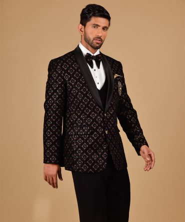 Black & Gold Sequin Thread Embroidery Velvet Indo-Western