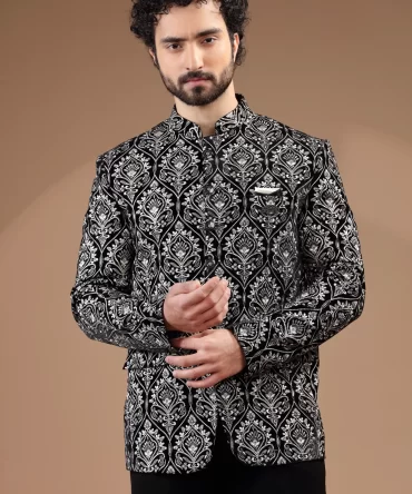 Black Floral & Multicolour Embroidered Jodhpuri Suit