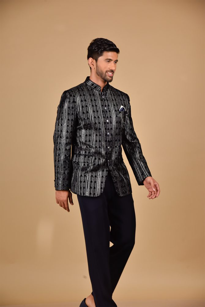 Our Black & Silver Thread Embroidered Festive Jodhpuri Suit is the perfect pick for formal festivities and wedding ceremonies. The intricately self design gives a refined regal look for the occasion.