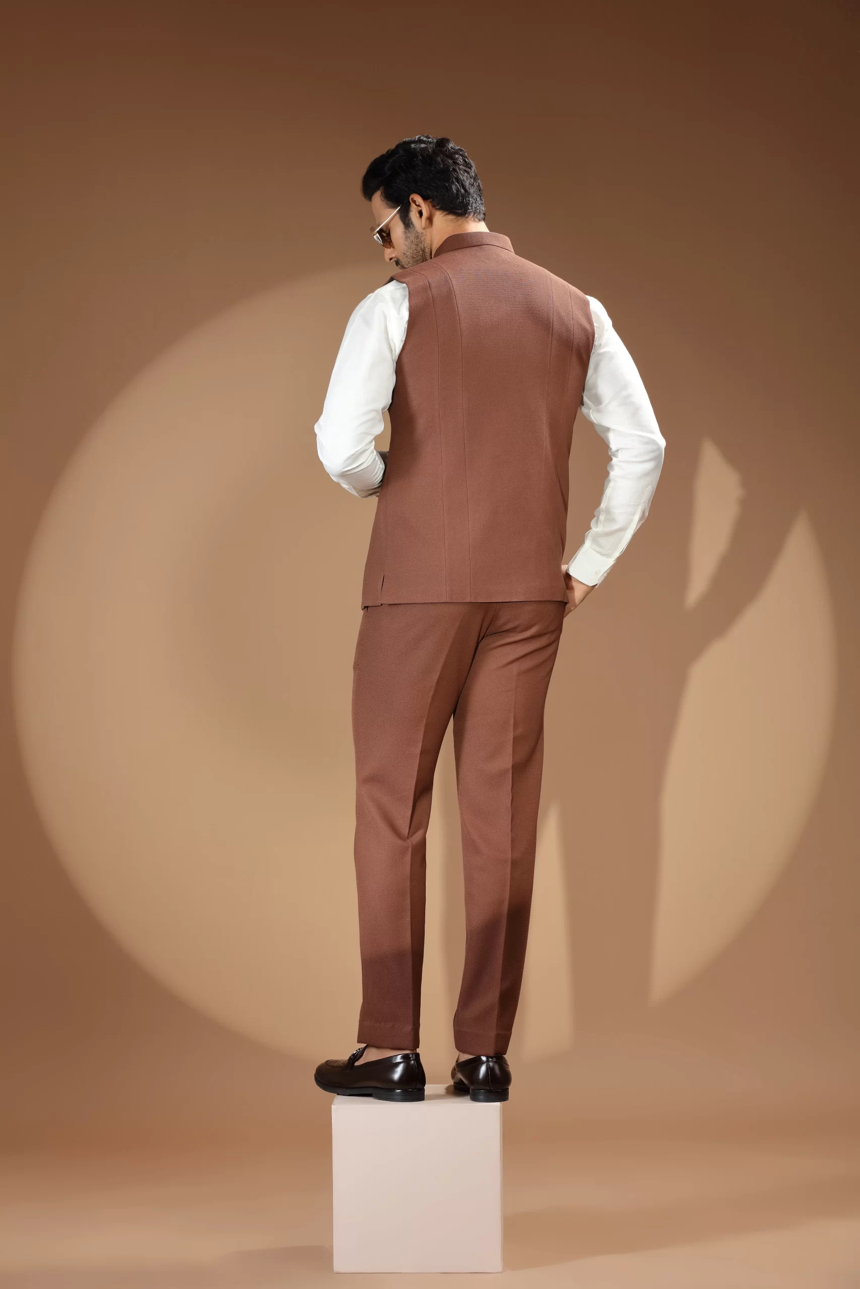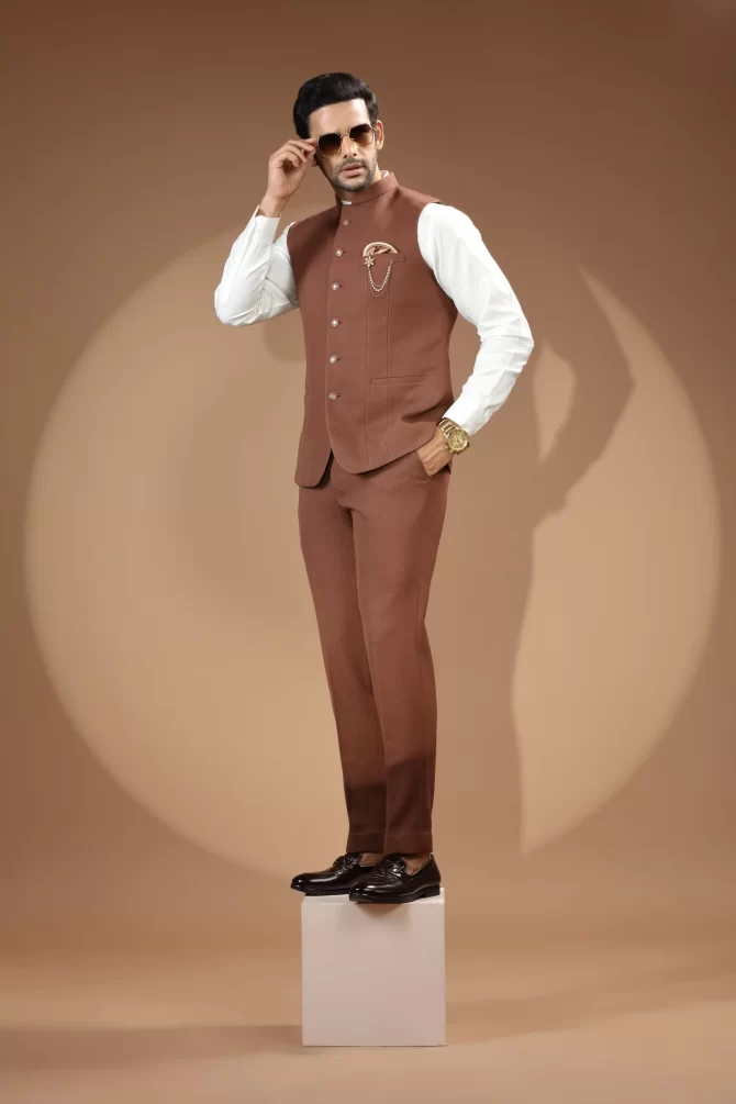 Make an edgy statement with our Brown Velvet Waist-Coat Set designed thoughtfully for the modern Indian man. A fusion staple fit for every occasion, adds the right amount of cultural twist to the western silhouette.