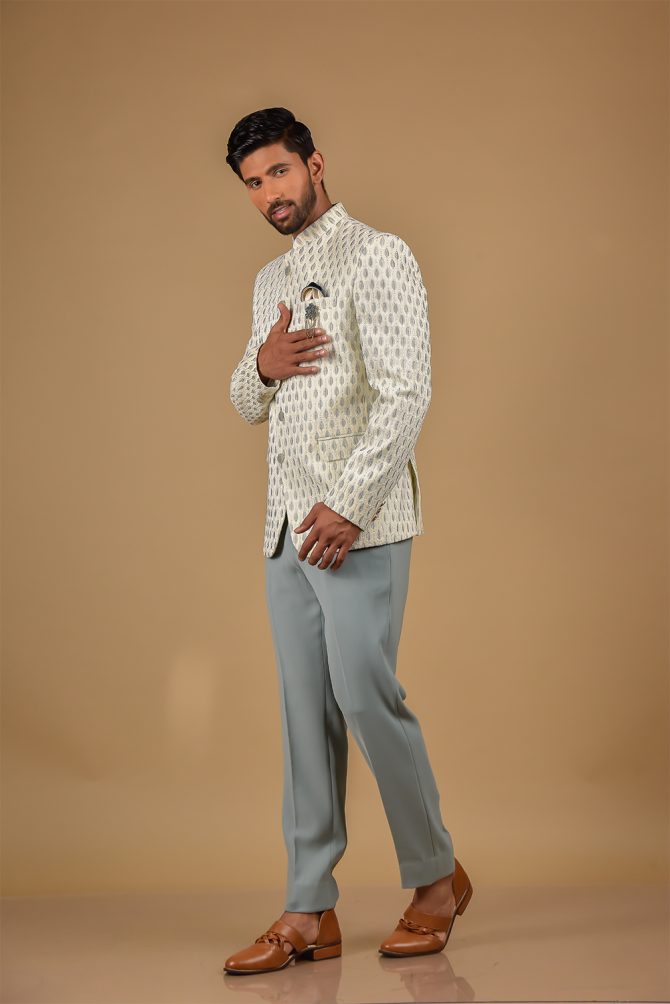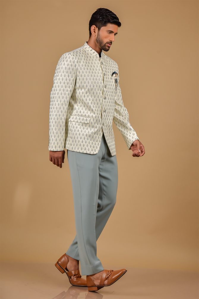 Our Cream & Grey Embroidered Jodhpuri is the perfect pick for formal festivities and wedding ceremonies. The intricately self design gives a refined regal look for the occasion.