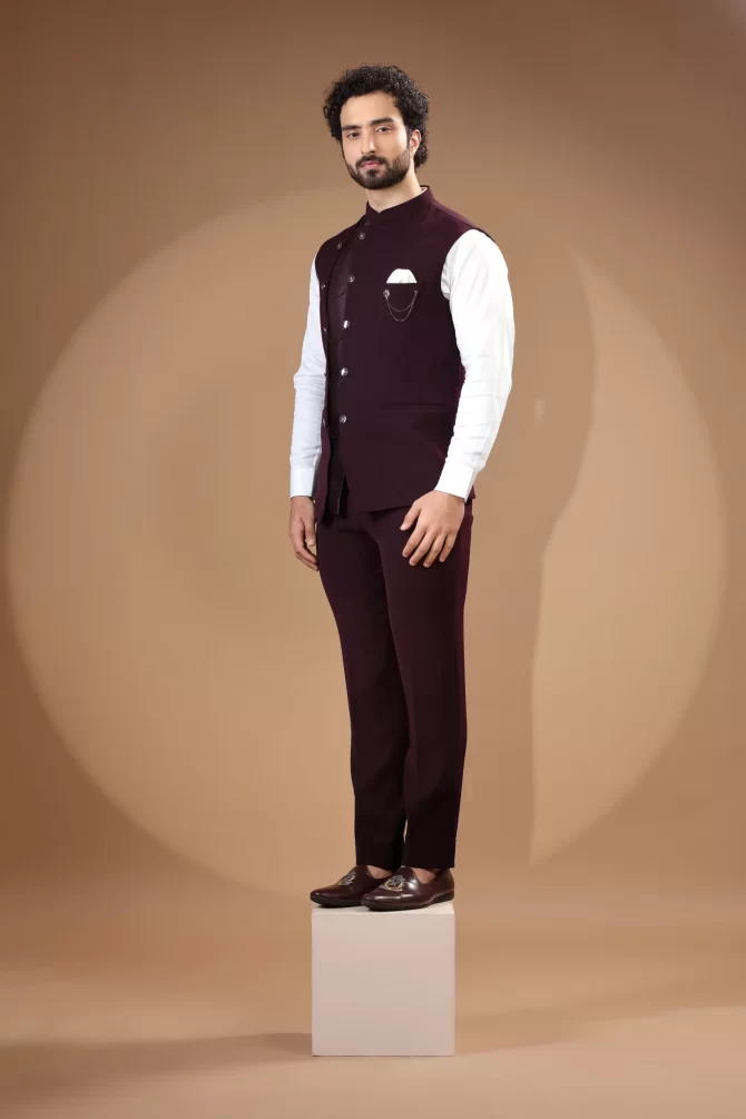 Make an edgy statement with our Maroon Velvet Waist-Coat Set designed thoughtfully for the modern Indian man. A fusion staple fit for every occasion, adds the right amount of cultural twist to the western silhouette.