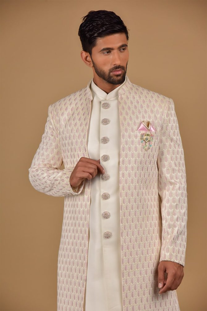 Make an edgy statement with our White & Pink Velvet Indo Western designed thoughtfully for the modern Indian man. A fusion staple fit for every occasion, adds the right amount of cultural twist to the western silhouette.