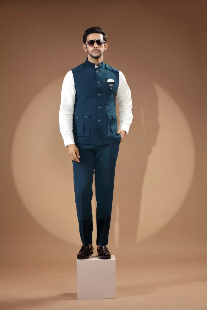 Make an edgy statement with our Royal Blue Velvet Waist-Coat Set designed thoughtfully for the modern Indian man. A fusion staple fit for every occasion, adds the right amount of cultural twist to the western silhouette.