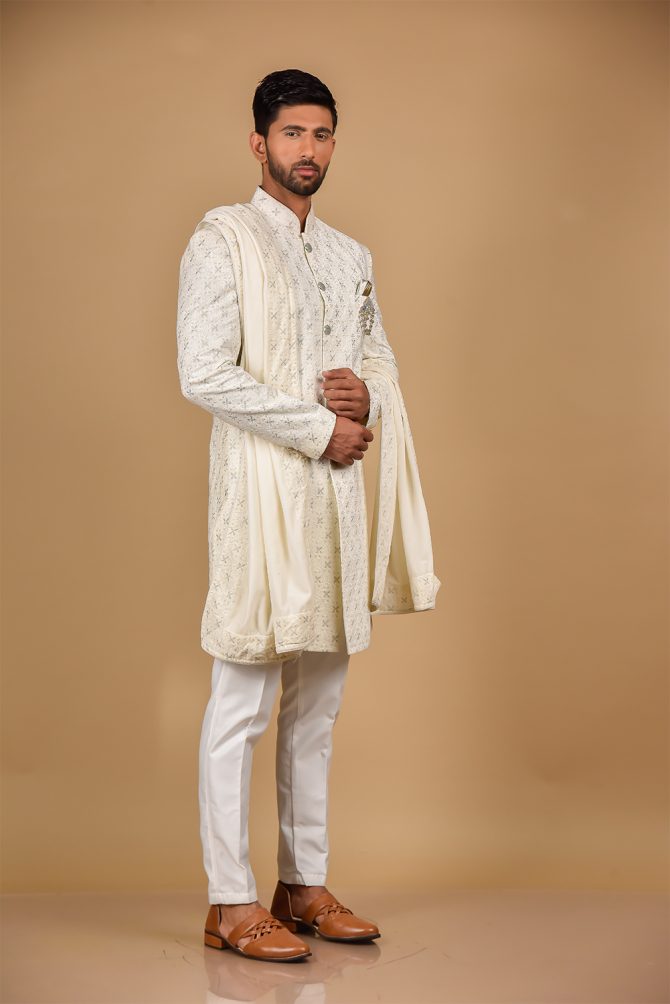 Make an edgy statement with our White Velvet Indo Western designed thoughtfully for the modern Indian man. A fusion staple fit for every occasion, adds the right amount of cultural twist to the western silhouette.